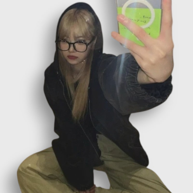 Adoptez un look casual et tendance avec cette veste jeans oversize kpop, une pièce inspirée du style cool et décontracté d’Eunchae. Conçue en denim avec une coupe oversize, cette veste zippée à capuche apporte une vraie touche streetwear à vos tenues tout en restant confortable et facile à porter.